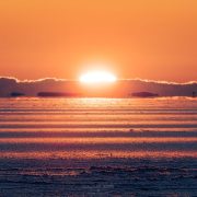 Midnight sun on Magerøya, Norway in the village of Gjesvaer